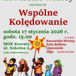 sobota, 17 stycznia 2026 r., godz. 15.00 MOK Kowar, ul. Szkolna 2, sala widowiskowa/ Wystąpią: Kowarskie Wrzosy Echo Bolków Lipowianie Olga (Kamienna Góra)