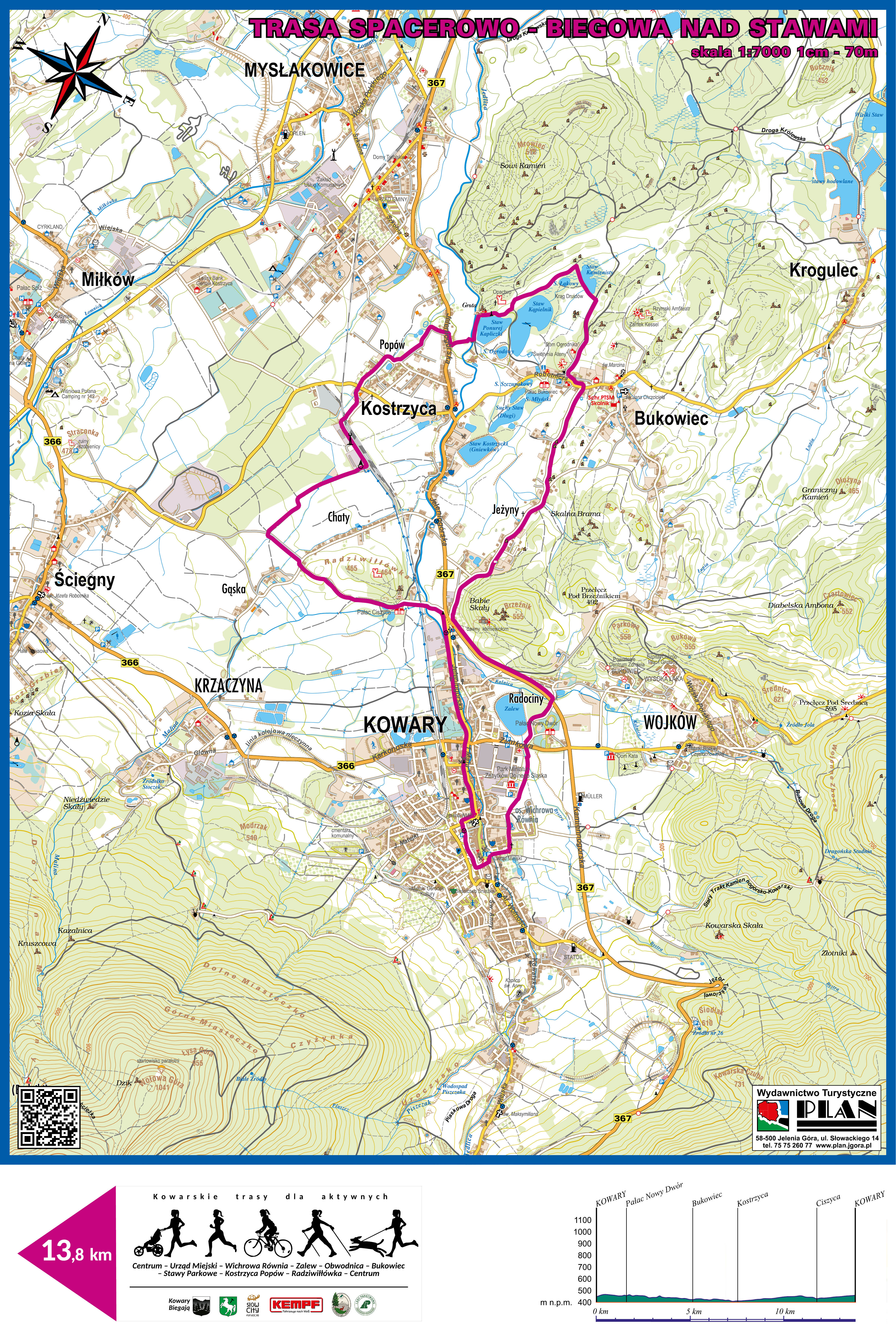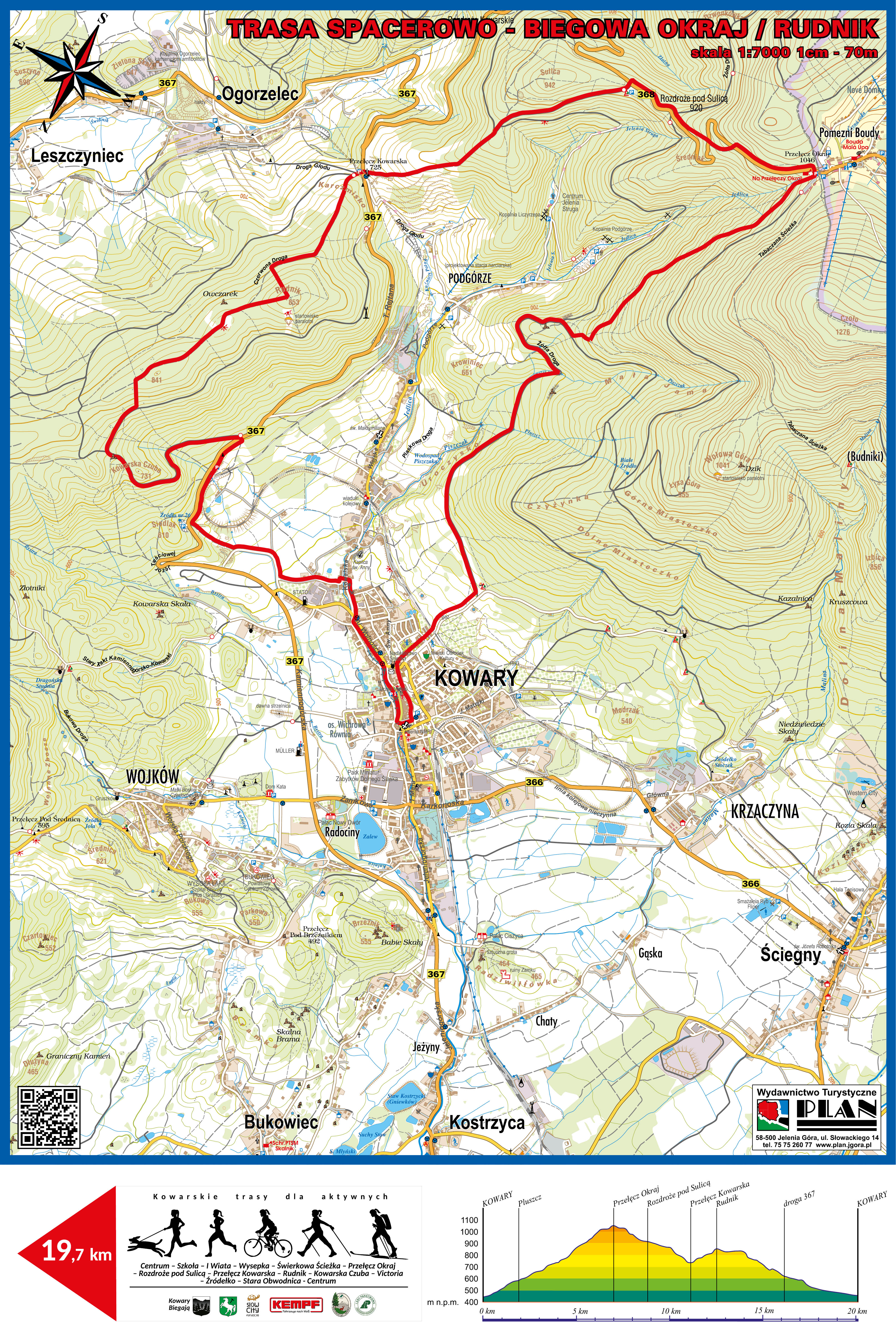 Miasto Kowary położone pomiędzy Karkonoszami i Rudawami Janowickimi, szczególnie nadaje się do uprawiania biegów górskich i spacerowania po górach z kijkami nordic walking. Osoby korzystające z uroków tutejszych tras przy okazji mogą podziwiać przepiękne widoki, obcować z przyrodą oraz oddychać świeżym górskim powietrzem. Od kilku lat wyraźnie widać wzrost zainteresowania aktywnym spędzaniem czasu na łonie natury, a dzięki zapaleńcom z lokalnej grupy “Kowary Biegają” systematycznie wyznaczane zostają nowe szlaki biegowe i nordic walking, część z nich została oznakowana już w terenie. Początek każdej z tras znajduje się przy ul. Jagiellończyka w Kowarach, przy której znajdują się tablice z mapami ciekawych szlaków biegowych. Obok też przy pobliskim markecie znajduje się darmowy parking, na którym można zostawić swoje auto. Zachęcamy do korzystania z Kowarskich Tras dla Aktywnych oraz polubienia profilu Kowary Biegają na profilu społecznościowym.