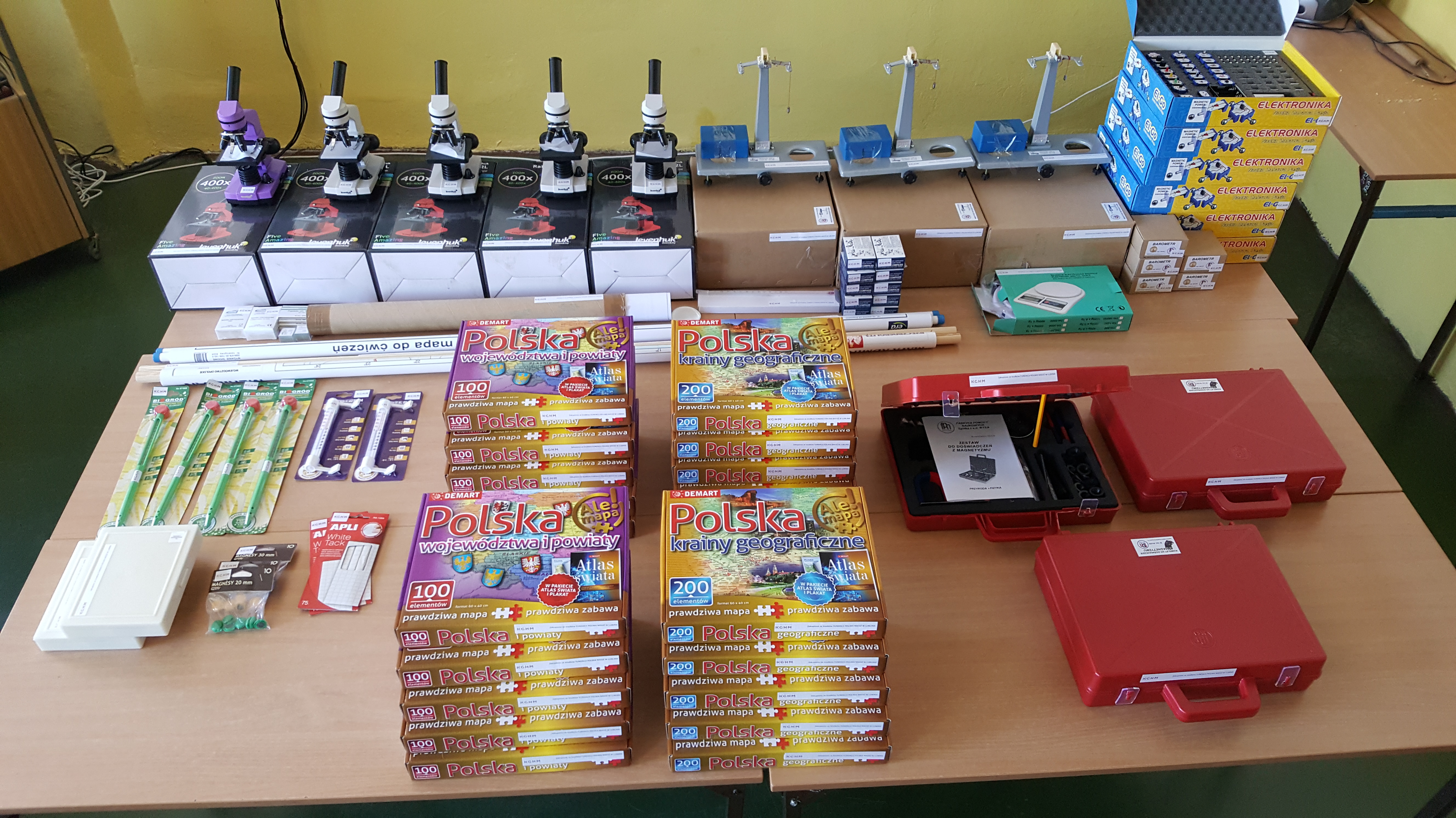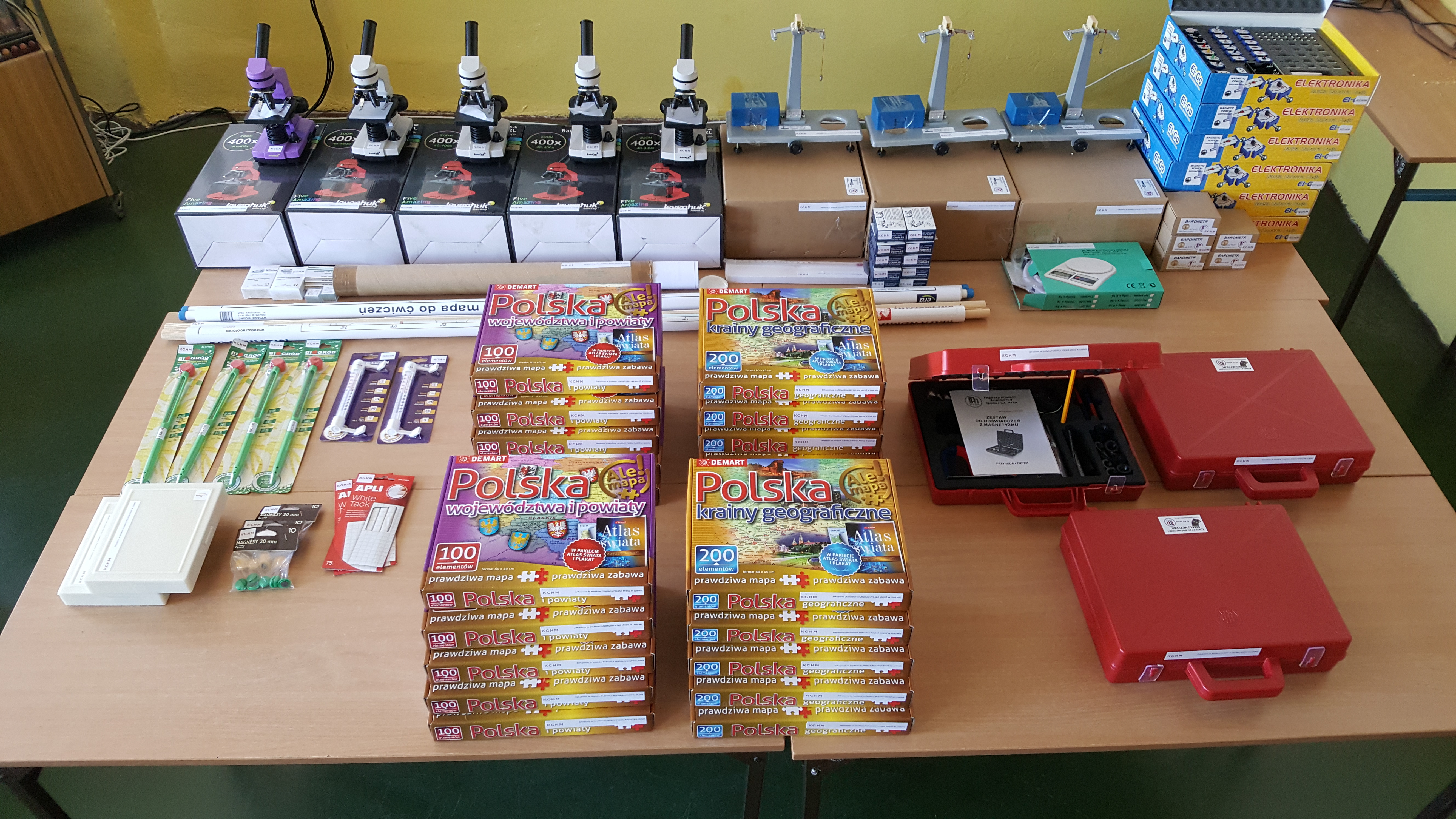 W ramach darowizny zakupione zostaną między innymi: mapy, kompasy, termometry, wagi elektroniczne i szalkowe, mikroskopy, zestawy do magnetyzmu, zestawy do budowania obwodów elektrycznych, puzzle itd.