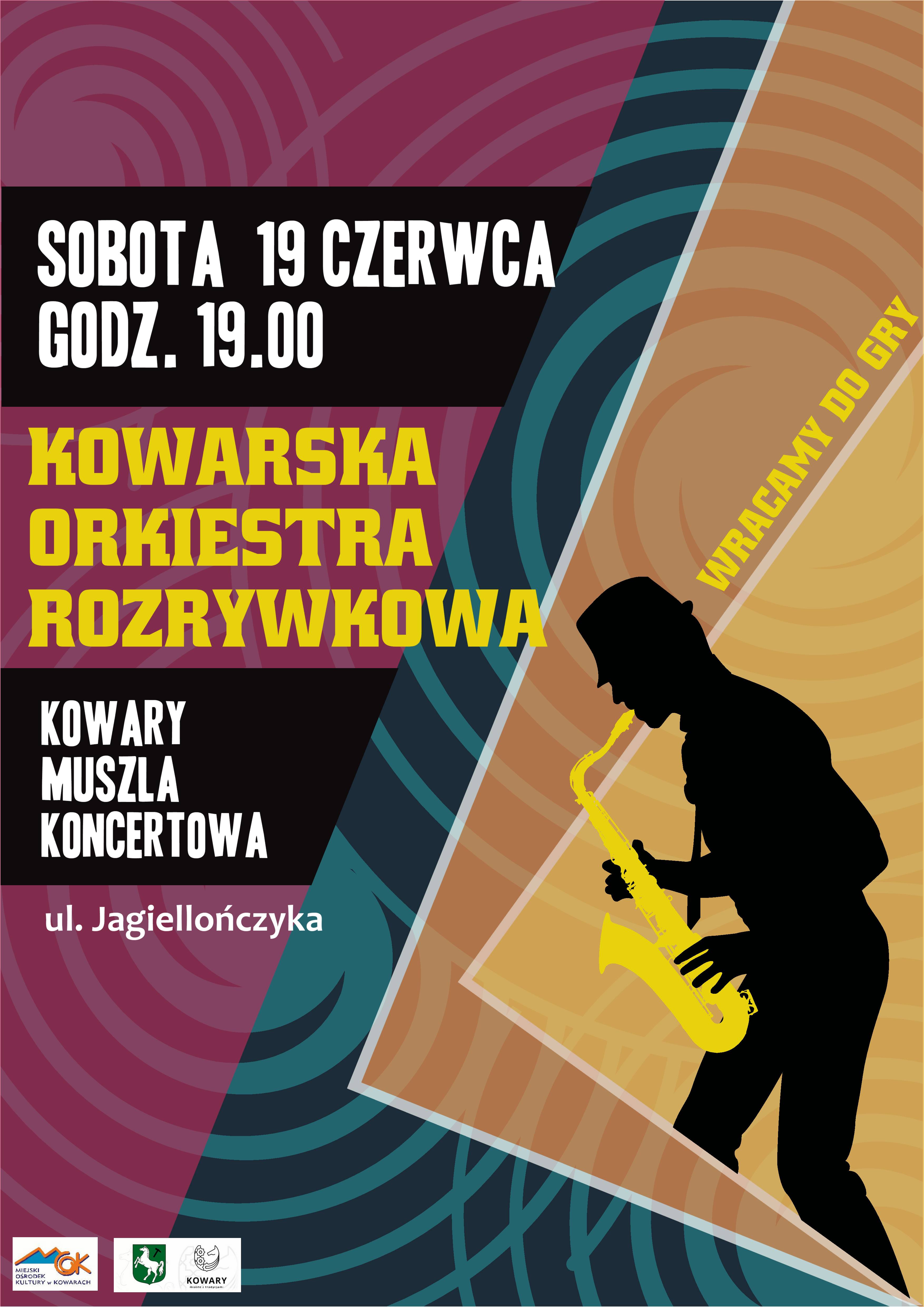 Koncert Kowarskiej Orkiestry Rozrywkowej Data publikacji 9 czerwca 2021 by Maciej Janas Zapraszamy 19 czerwca 2021 o godzinie 19.00 na ulicę Jagiellończyka. W muszli koncertowej zagra Kowarska Orkiestra Rozrywkowa.