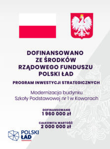 Gmina Miejska Kowary otrzymała dofinansowanie na zadanie złożone do Rządowego Funduszu Polski Ład: Program Inwestycji Strategicznych – edycja szósta PGR, w ramach którego zaplanowano modernizację budynku nr 1 Szkoły Podstawowej nr 1 w Kowarach.