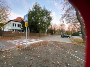 Zadanie polegało na budowie bezpiecznego wyniesionego przejścia, miejsca postoju dla osób niepełnosprawnych i ciągu pieszego przy ul. Jana Matejki (droga gminna 115873D, przy skwerze z rzeźbą Laurentiusa Angelusa) i budowie bezpiecznego wyniesionego przejścia dla pieszych wraz z doświetleniem przejścia przy ul. Henryka Sienkiewicza (przed Przedszkolem Publicznym) na drodze gminnej 115888D oraz zmianie organizacji ruchu na obu lokalizacjach.