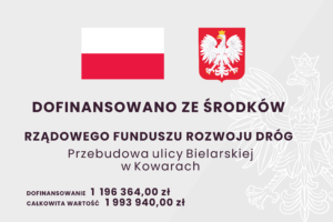 Z przyjemnością informujemy, że Gmina Miejska Kowary otrzymała dofinansowanie ze środków pochodzących z Rządowego Funduszu Rozwoju Dróg na realizację projektu pn.: „Przebudowa ulicy Bielarskiej w Kowarach”.