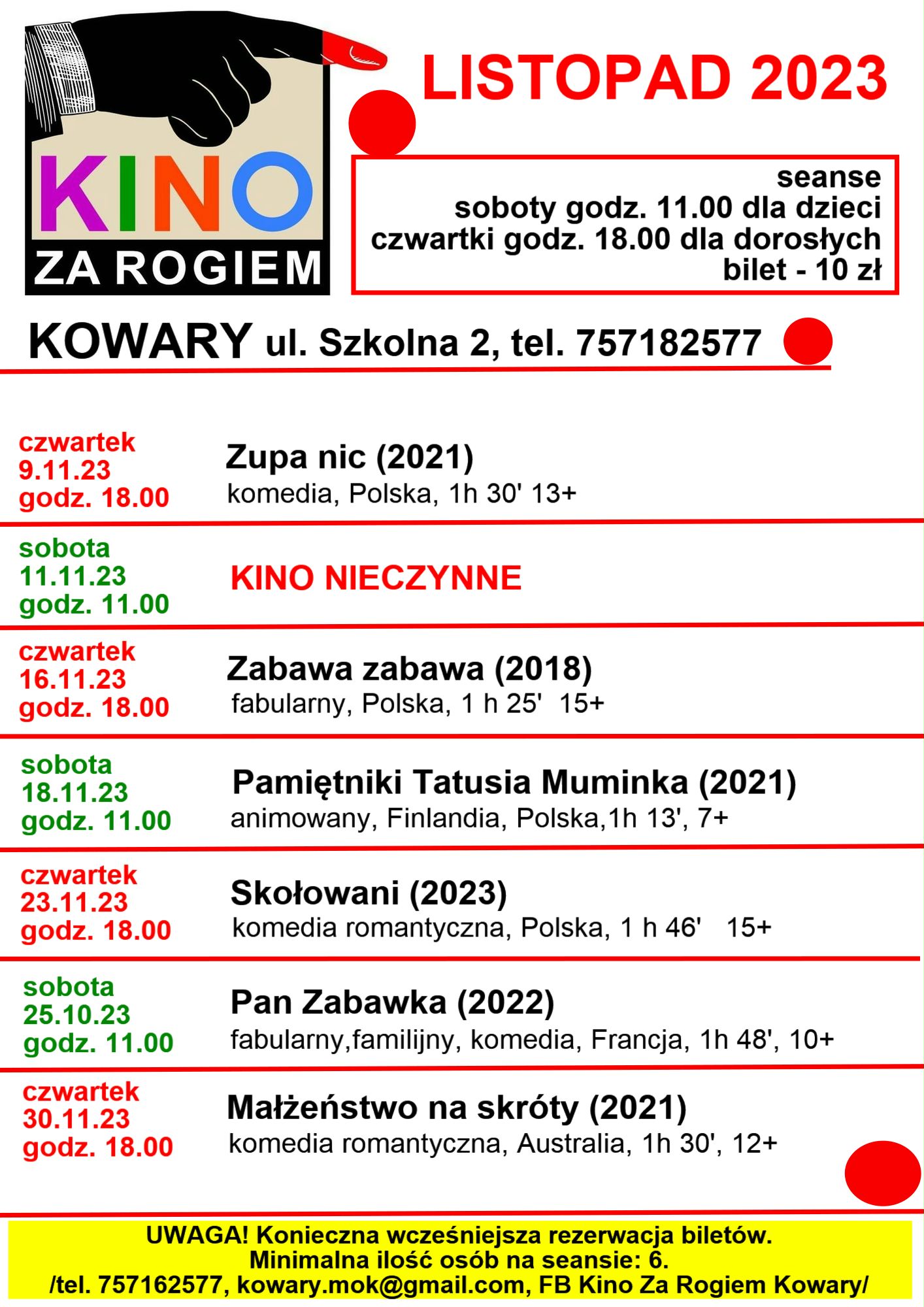 Zapraszamy do Kina za Rogiem – listopad
