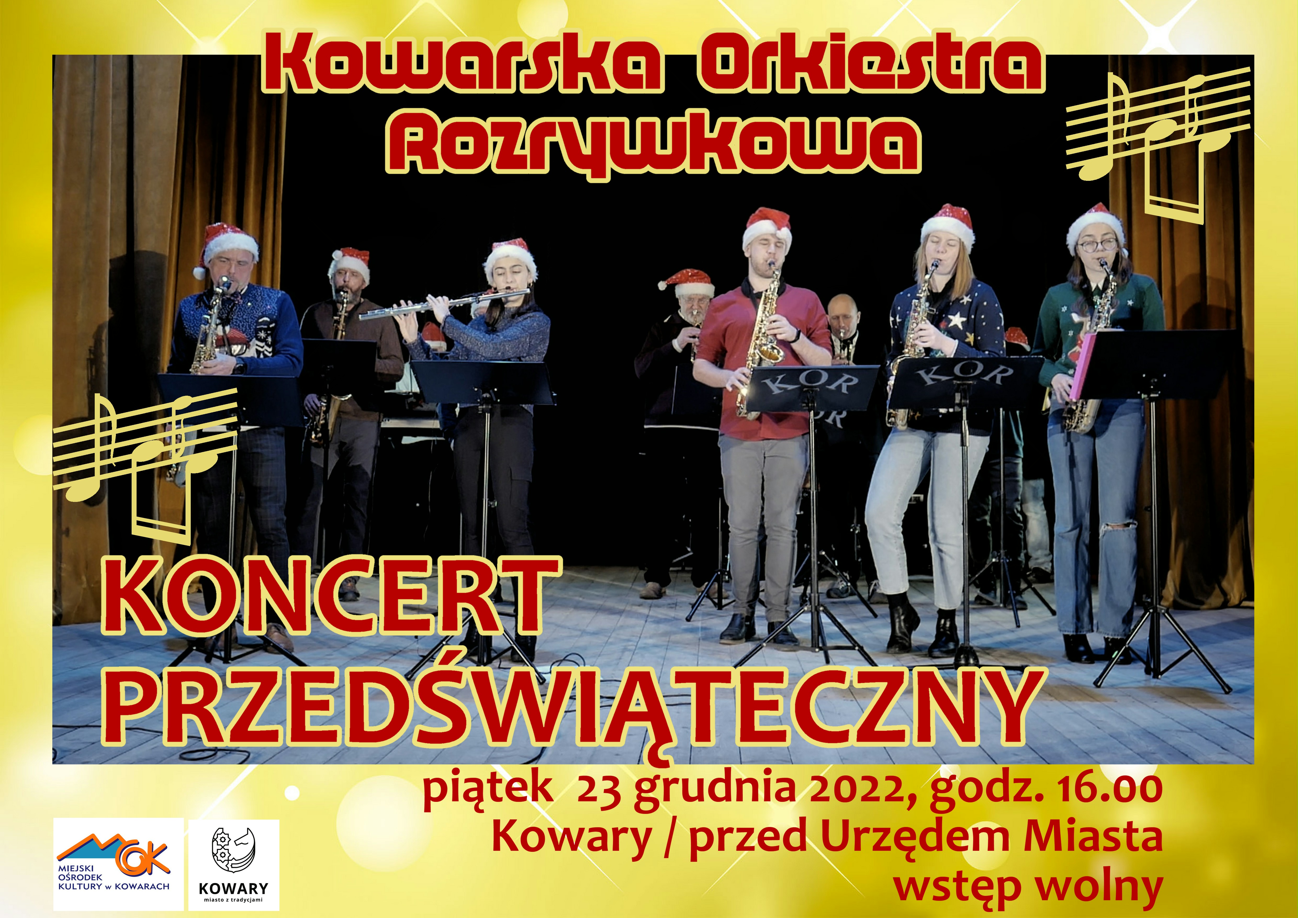 Zapraszamy na przedświąteczny koncert KOR Data publikacji 22 grudnia 2022 by Maciej Janas Kowarska Orkiestra Rozrywkowa zagra dla Was w piątek 23 grudnia o godz. 16.00 pod Urzędem Miejskim w Kowarach. Zapraszamy.