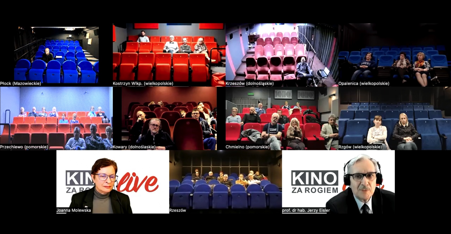 W piątek 25 marca 2022 r. o godzinie 19:00 odbyło się pierwsze z tego cyklu. Tematem spotkania była „Epoka Gierka”. Gościem był historyk prof. dr hab. Jerzy Eisler, wybitny znawca współczesnych dziejów Polski. Spotkanie trwało ponad 90 minut, z których przez 40 minut widzowie z poszczególnych kin zadawali pytania Profesorowi. – zdjęcie poniżej.