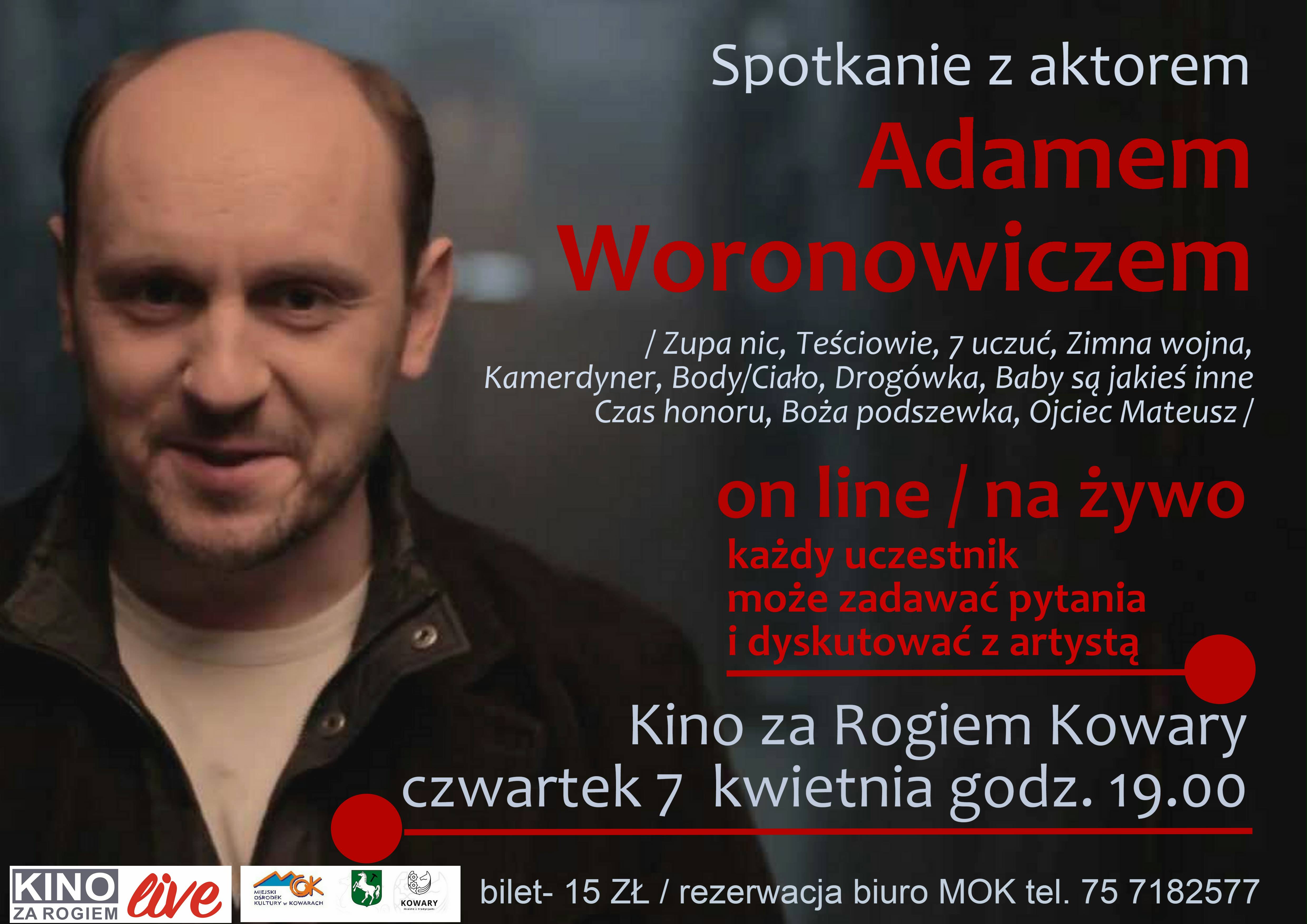 Gościem spotkania 7 kwietnia 2022, godz. 19:00.z cyklu Kino za Rogiem Live będzie aktor Adam Woronowicz. Spotkanie poprowadzi krytyk filmowy Łukasz Maciejewski. W spotkaniu będzie uczestniczyć maksymalnie dziesięć kin. Cena biletu: 15 zł.