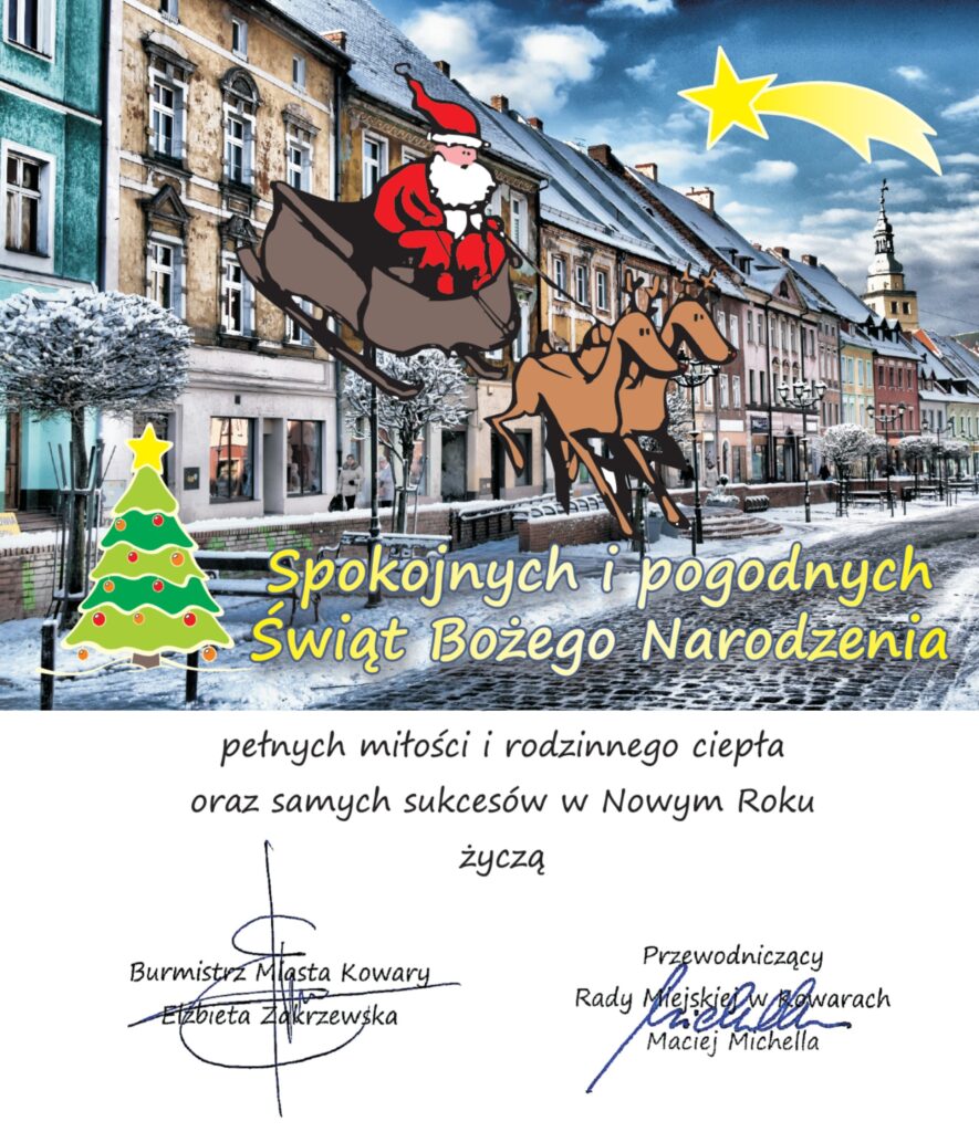 Życzenia od władz Miasta Kowary Data publikacji 21 grudnia 202221 grudnia 2022 by Dominik Cybulski Przekazujemy Państwu najserdeczniejsze życzenia od władz naszego miasta, a przy okazji dołączamy się do życzeń .